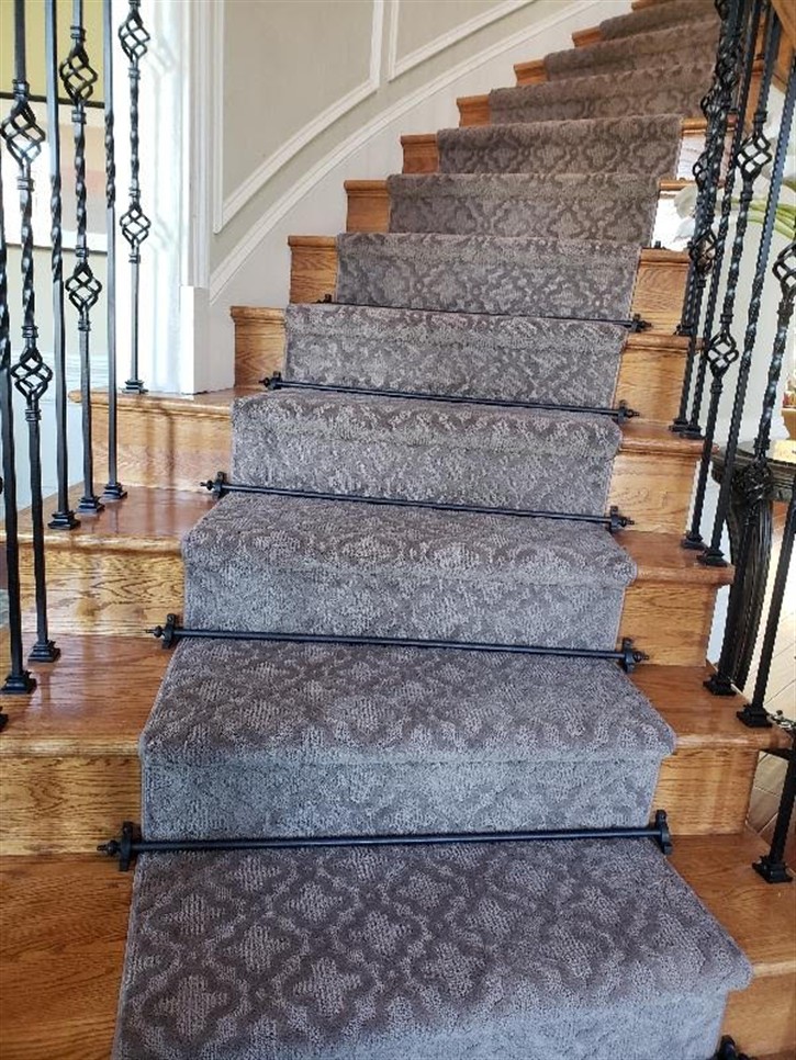 Silk runner on Pie Steps with Wrought Iron Stair Rods